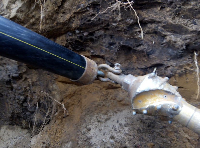 4. Затяжка трубы в готовый канал